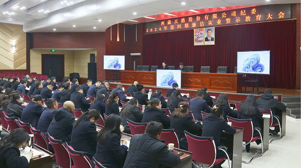 為深入貫徹落實(shí)黨的二十屆三中全會(huì)精神,進(jìn)一步推進(jìn)黨風(fēng)廉政建設(shè),12月9日,西藏天路股份有限公司紀(jì)委召開2024年第四期廉潔從業(yè)警示教育大會(huì),公司黨委書記、董事長(zhǎng)頓珠朗加參加會(huì)議并講話,黨委專職副書記、董事、工會(huì)主席西虹主持會(huì)議。